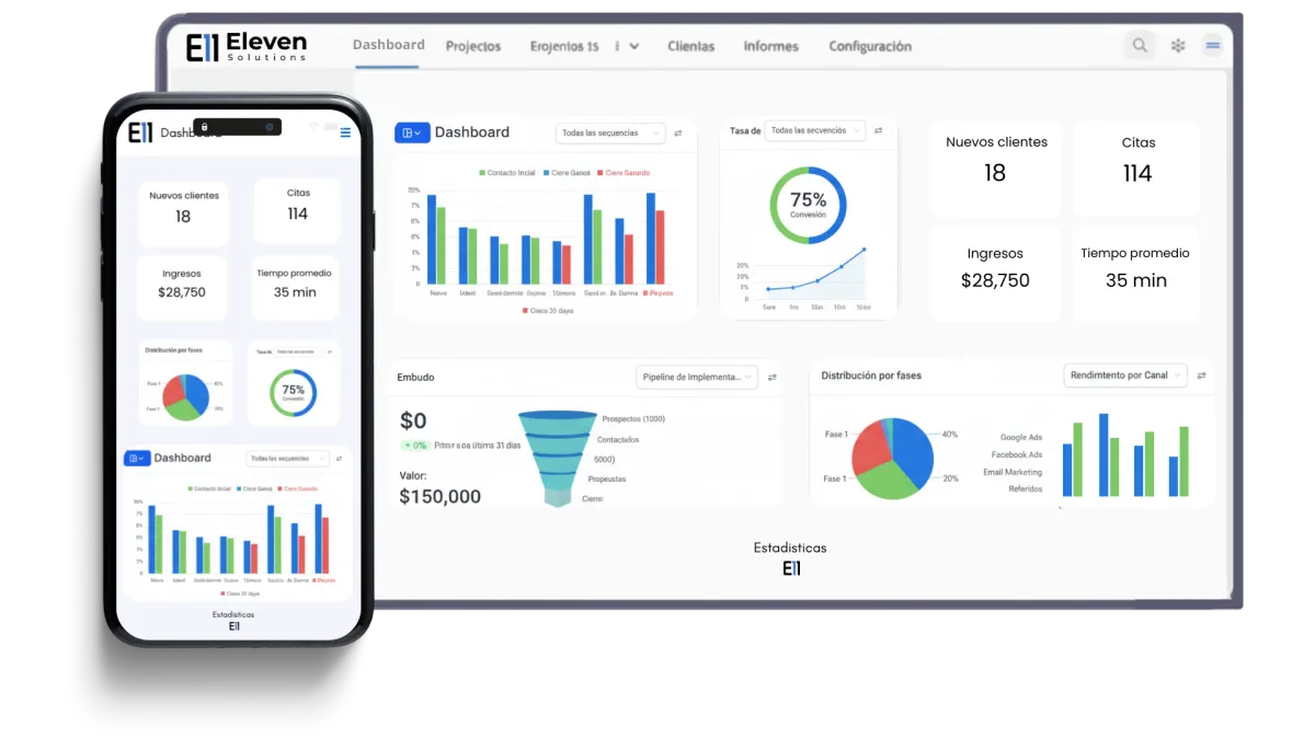 Eleven Solutions es una empresa dedicada a crear soluciones digitales prácticas y modernas para pequeñas y medianas empresas. Nuestros servicios están diseñados para ayudar a negocios a optimizar su administración, mejorar la atención a sus clientes y aumentar su competitividad en el mercado.